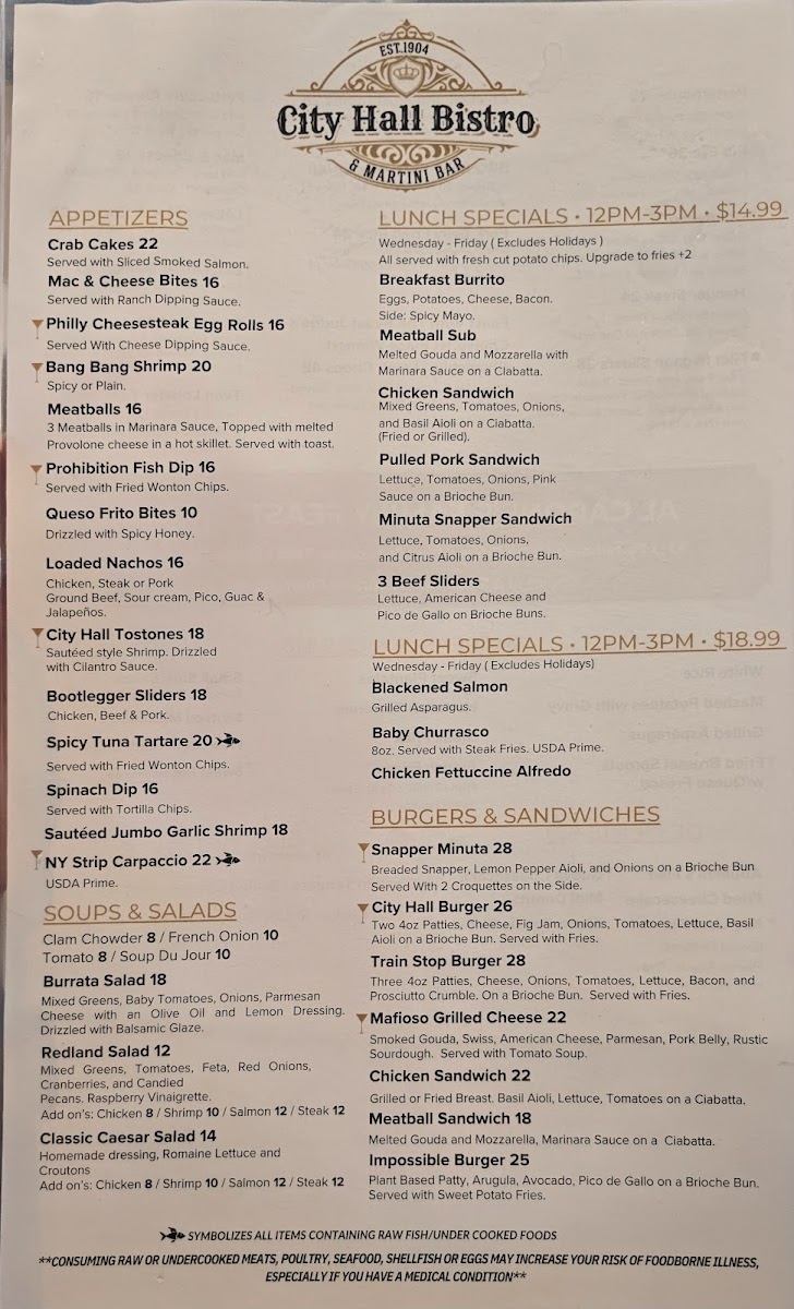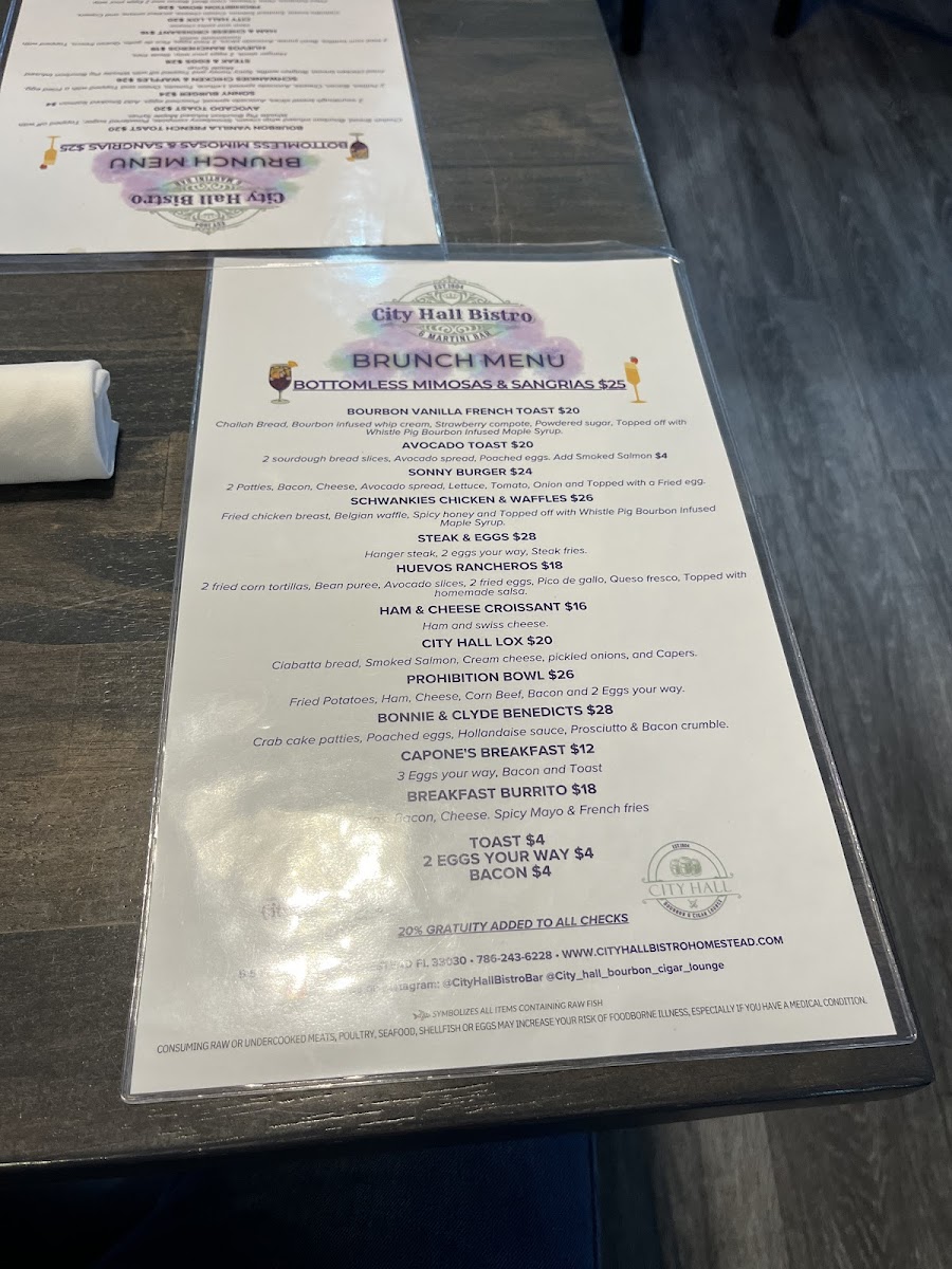 Introducing the menu at City Hall Bistro & Martini Bar is truly a delight for the senses. Nestled at 5 S Flagler Ave in Homestead, this vibrant spot pairs a stunning ambiance with an exceptional culinary experience. Guests rave about the impeccably crafted dishes, such as the mouthwatering ribeye steak, which has been hailed as the best in town. The artistic presentation is complemented by fresh, high-quality ingredients, ensuring every bite is memorable.